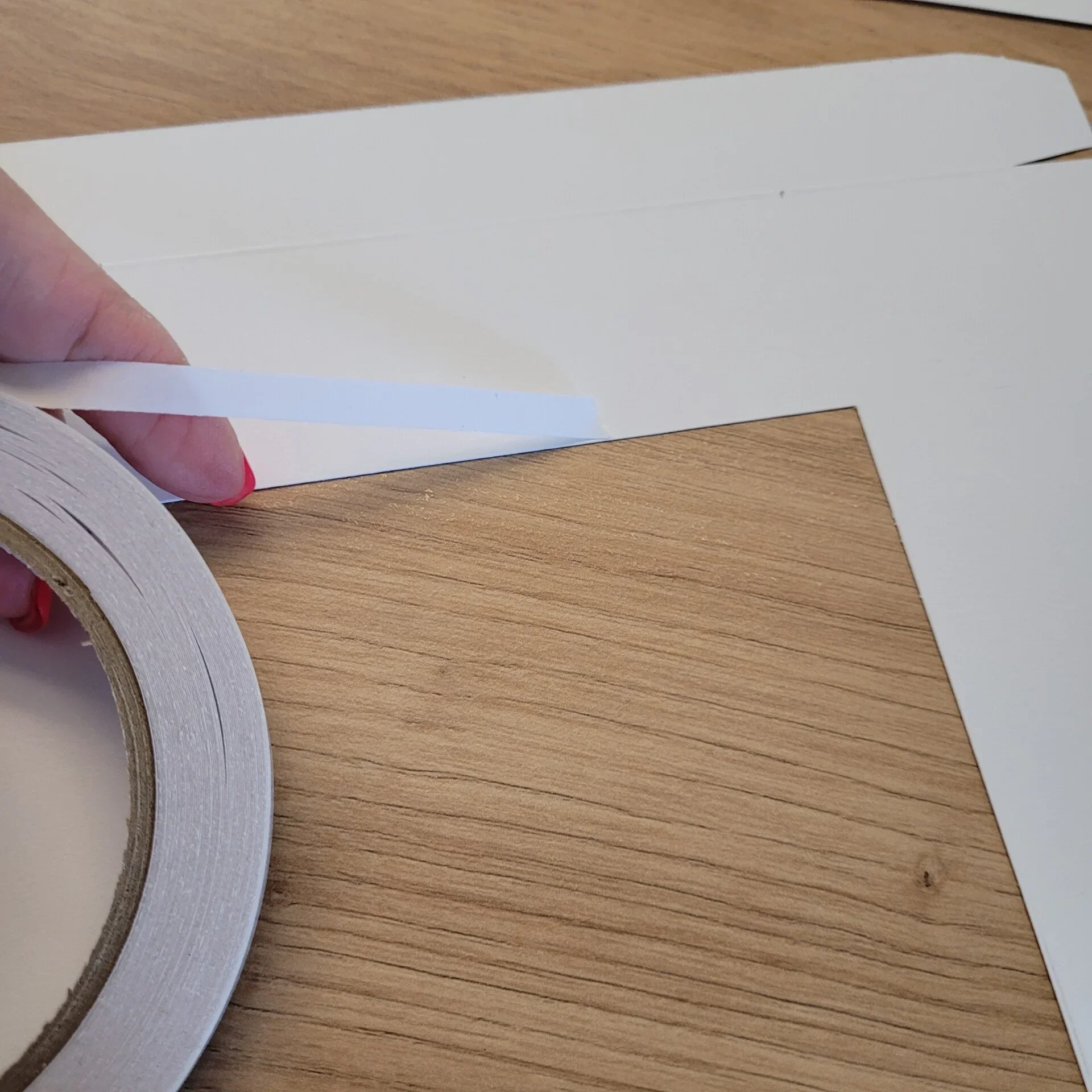 1. Designpapier: We kiezen eerst een passend designpapier dat de kleuren en het karakter van de waxinelichthouder mooi complimenteert. Dit kan variëren van zacht pastelkleurig papier tot opvallend grafische prints, afhankelijk van o.a. het seizoen of de stijl van het cadeau.